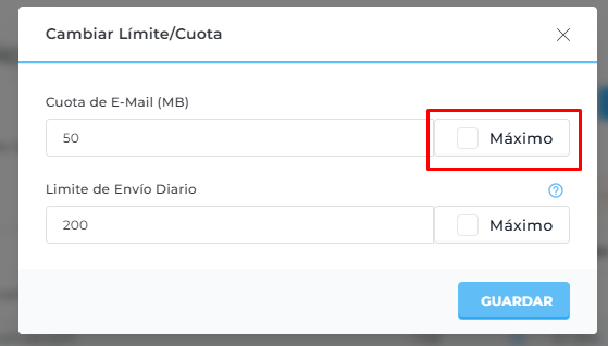 4. Selecciona la casilla de MAXIMO para que quede ilimitado.