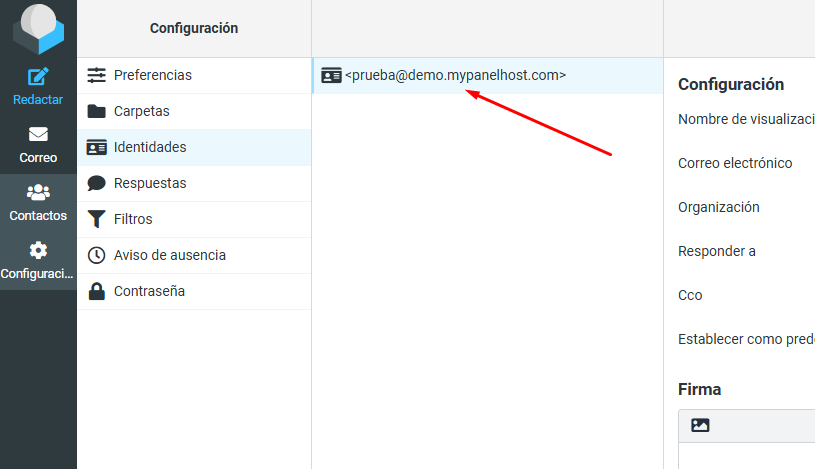 4. Posteriormente seleccione el dominio para el cual desea añadir la firma.