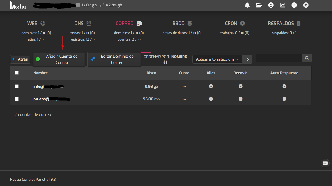 3. Selecciona el dominio en el cual quieres crear el correo electrónico